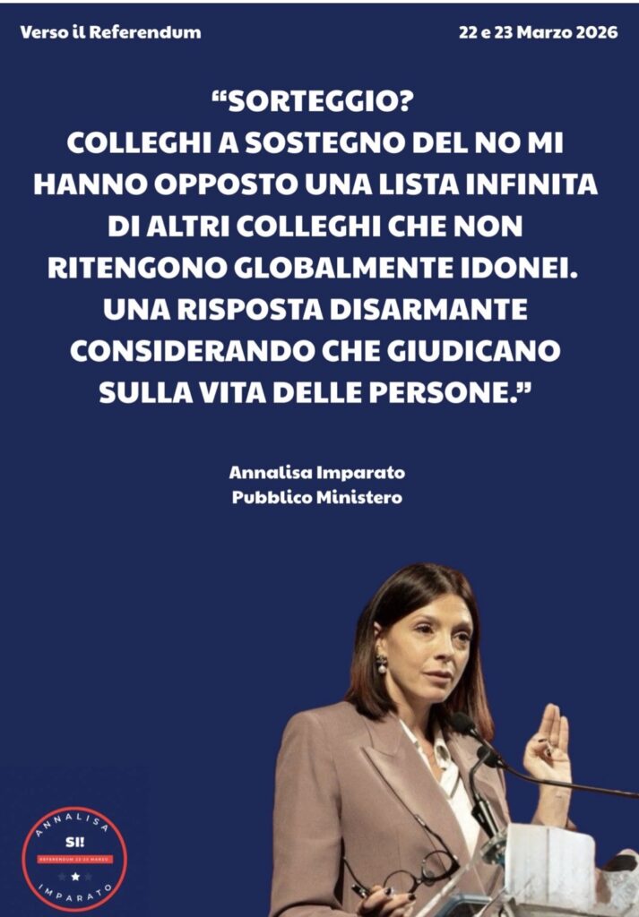 Se dovesse prevalere il NO alla riforma – magari alimentato da narrazioni distorte, da paure strumentali e da una difesa corporativa spacciata per tutela dell’indipendenza – il rischio è evidente: magistrati come Annalisa Imparato, Anna Gallucci, Carmen Giuffrida, Andrea Miranda, Gennaro Varone, Alfonso D’Avino, Luigi Salvato, Giuliano Castiglia, Giuseppe Capoccia, e non tanti altri, che si esprimono apertamente a favore della riforma, potrebbero diventare inermi bersagli interni, esposti a un logoramento lento, silenzioso e perfettamente “regolare”. Simile a quello subito dal PM Andrea Padalino.
